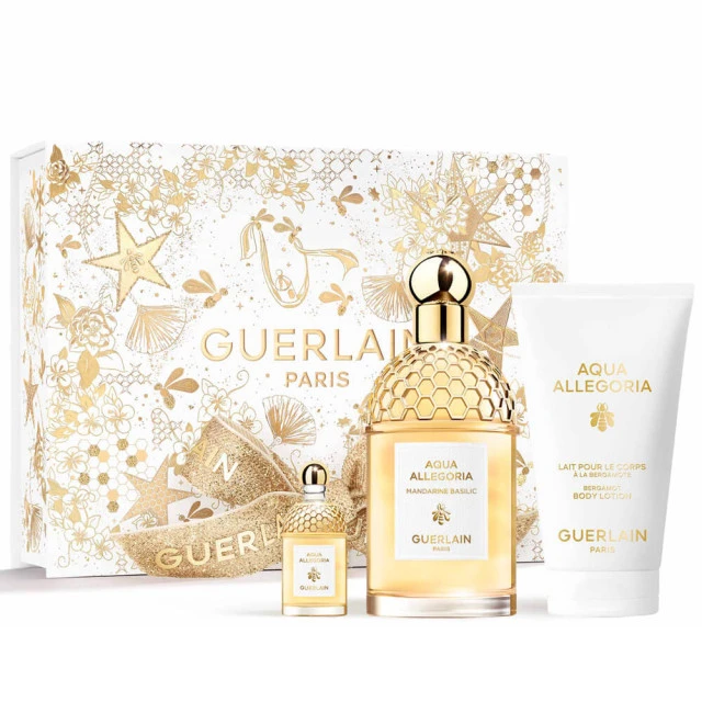 – L’Eau de Toilette Aqua Allegoria Mandarine Basilic (125 mL et une miniature 7,5 mL), un hespĂ©ridĂ© aromatique, pĂ©tillant et lumineux. La pulpe juteuse et acidulĂ©e de la mandarine transcendĂ©e par la fraĂźcheur aromatique du basilic puis Ă©nergisĂ©e par le thĂ© vert sur fond de notes boisĂ©es.