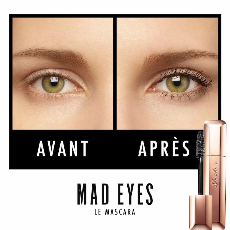 MAD EYES Mascara offre un volume cil Ă cil sur-mesure : +112%* de volume immĂ©diat. Les cils sont plus denses, plus longs et plus courbĂ©s pendant 24 heures**. Sa brosse douce en fibre est calibrĂ©e pour augmenter la charge du cil Ă chaque passage pour un volume spectaculaire tenue 24 heures** et water-rĂ©sistant**. Sa formule unique infuse les cils de soin pour des cils de plus en plus beaux application aprĂšs application. AprĂšs 4 semaines dâutilisation, mĂȘme dĂ©maquillĂ©e, les fibres sont plus longues, la frange est plus dense et la courbe est augmentĂ©e. Sa formule rĂ©siste aux larmes et Ă l’humiditĂ©.