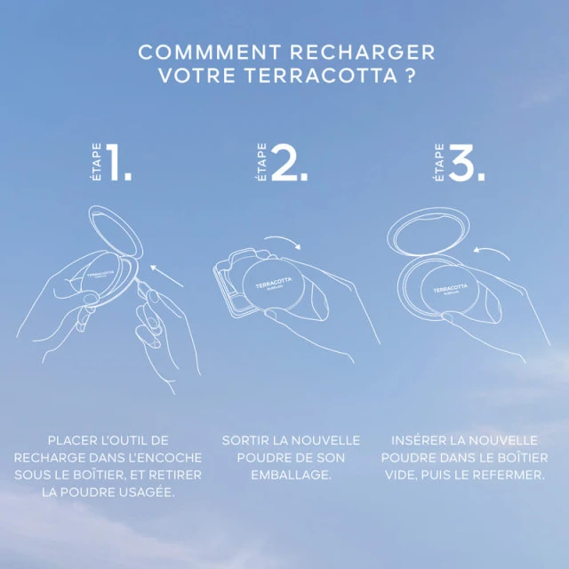 « Appliquer la Terracotta sur les zones les plus bombĂ©es comme les pomettes, l’arrĂȘte du nez et le haut du front pour apporter plus de structure au visage tout en rĂ©chauffant dĂ©licatement le teint. »