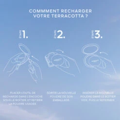La lĂ©gendaire poudre bronzante Terracotta dans sa teinte bestseller 03 â Moyen DorĂ©, maintenant rechargeable, reproduit Ă la perfection, en un geste simple et immĂ©diat, un hĂąle au fini naturel inimitable. Avec 96% dâingrĂ©dients dâorigine naturelleÂč dont ses pigments minĂ©raux et nacres, sa texture fusionne instantanĂ©ment sur la peau pour assurer ce fini bonne mine perfecteur. InfusĂ©e en huile dâargan naturelle du Maroc, connue pour ses propriĂ©tĂ©s nourrissantes, sa formule prĂ©serve lâhydratation de la peau pour un confort longue durĂ©e.Â
