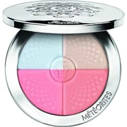 Version nomade des mythiques perles, la poudre compact Météorites de Guerlain corrige, matifie et illumine délicatement le teint. Finement pressées, les perles se réinventent en une harmonie de 4 teintes sublimatrices offrant à chaque carnation la plus juste dose de lumière. Signature couleur des Météorites, les nuances mates corrigent tandis que la teinte irisée recréé une luminosité sur mesure. Sa technologie Poussière d’Etoile – un polymère créateur de lumière, transforme sur la peau la lumière invisible à l’oeil nu en éclat pur. Grâce à sa texture floutante lissant pores et imperfections, la peau se pare d’un voile de velours au toucher soyeux. Combinée à son action anti-brillance tout en préservant l’hydratation de la peau, le teint est matifié, lissé et illuminé. Votre meilleure alliée pour un teint sans défaut, la poudre compact Météorites magnifie la peau pour un fini éclatant tout au long de la journée.